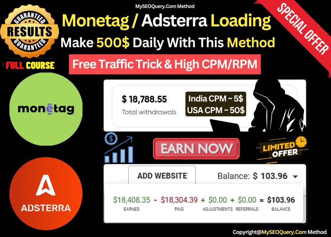 Monetag/Adsterra Loading With Free Traffic Source & High-CPM Revenue Method For Direct Link Ad Platforms